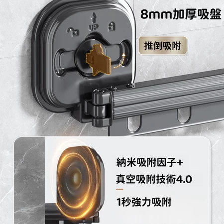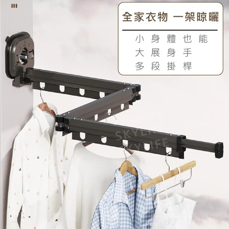20分鐘前【不佔空間 晾衣神器】吸盤壁掛式鋁合金折疊晾衣架「免打孔 即吸即用」 - (熱賣)L【加長款 - 四段三折】鋁合金壁掛式伸縮晾衣架 = NT$1450