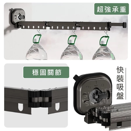 半小時前【不佔空間 晾衣神器】吸盤壁掛式鋁合金折疊晾衣架「免打孔 即吸即用」 - (熱賣)L【加長款 - 四段三折】鋁合金壁掛式伸縮晾衣架 = NT$1450