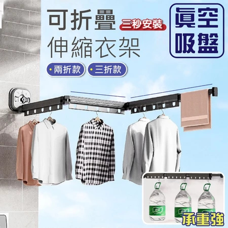 5分鐘前【不佔空間 晾衣神器】吸盤壁掛式鋁合金折疊晾衣架「免打孔 即吸即用」 - M【中長款 - 三段兩折】鋁合金壁掛式伸縮晾衣架 = NT$1299