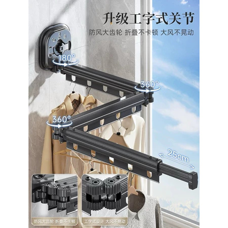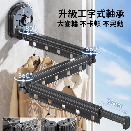 2分鐘前【不佔空間 晾衣神器】吸盤壁掛式鋁合金折疊晾衣架「免打孔 即吸即用」 - (熱賣)L【加長款 - 四段三折】鋁合金壁掛式伸縮晾衣架 = NT$1450