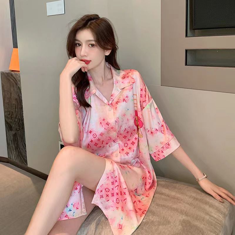 半小時前春夏蕾絲睡裙 冰絲短袖薄款寬鬆 性感襯衫睡衣裙 - 【98%選擇】二入組 NT$1298