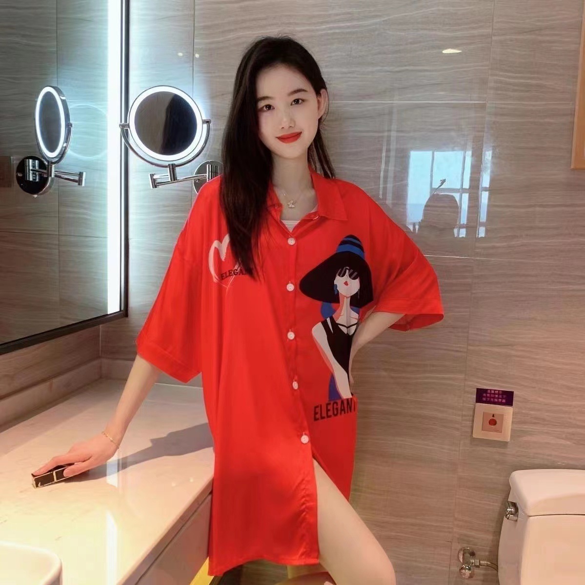 半小時前春夏蕾絲睡裙 冰絲短袖薄款寬鬆 性感襯衫睡衣裙 - 【今日限定 獨家體驗】1入僅售-NT$998