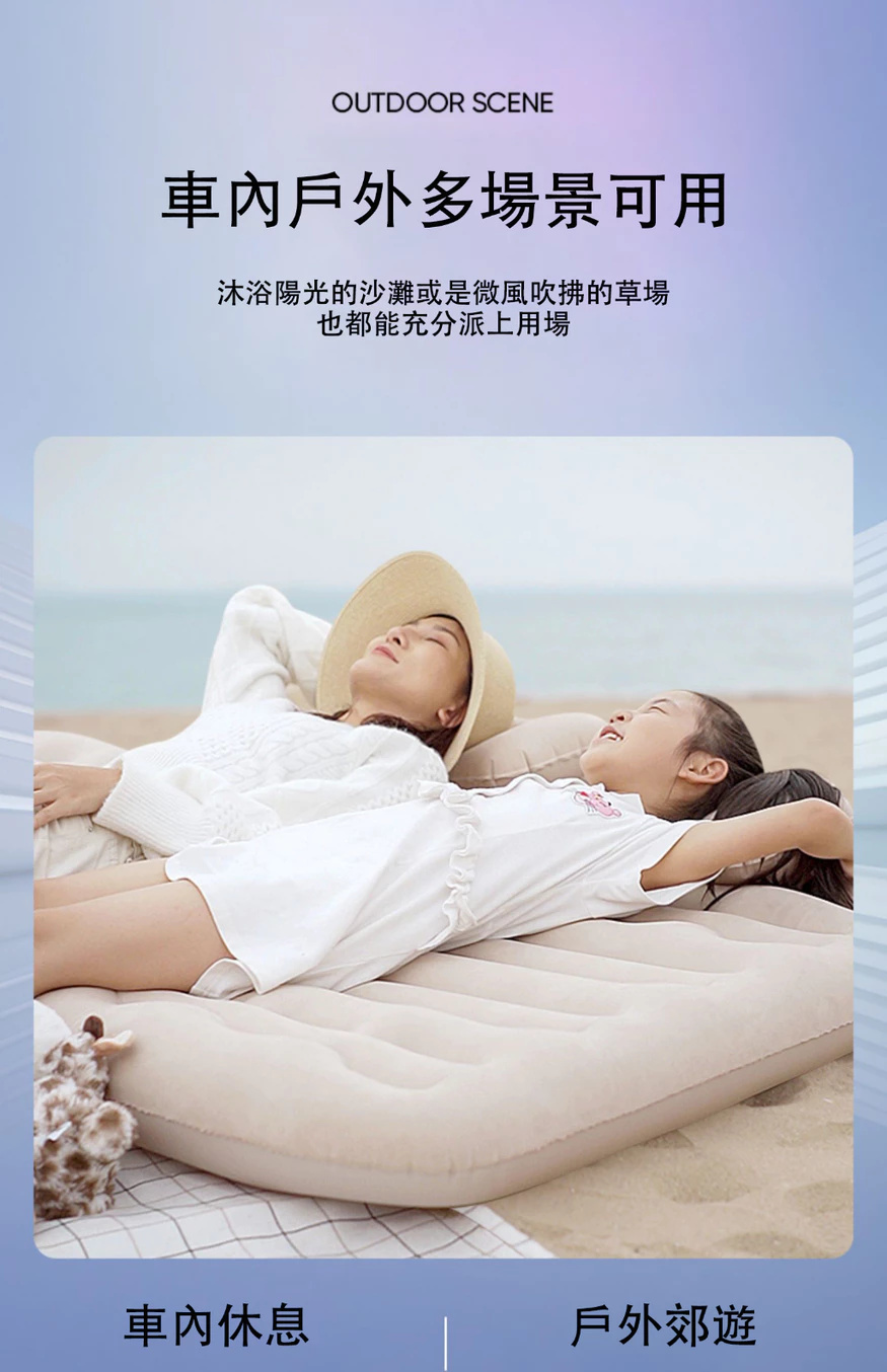 汽車充氣床墊【親膚植絨+全配套裝】雙人充氣床墊 露營充氣床墊