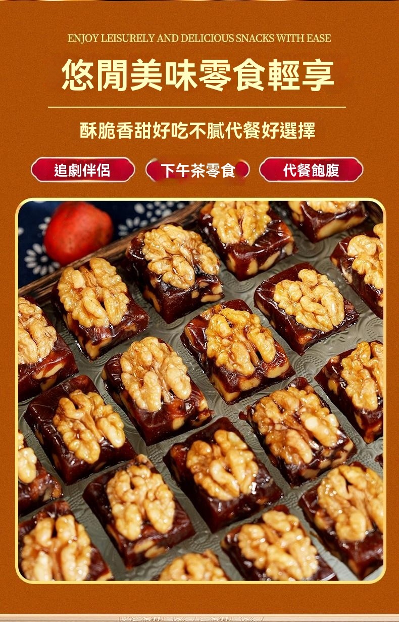 2分鐘前【爆款熱賣】山楂烤核桃糕真材實料健康營學生養代餐早餐好吃飽腹下午茶 - 【500g嘗鮮價 限時下殺】NT$998